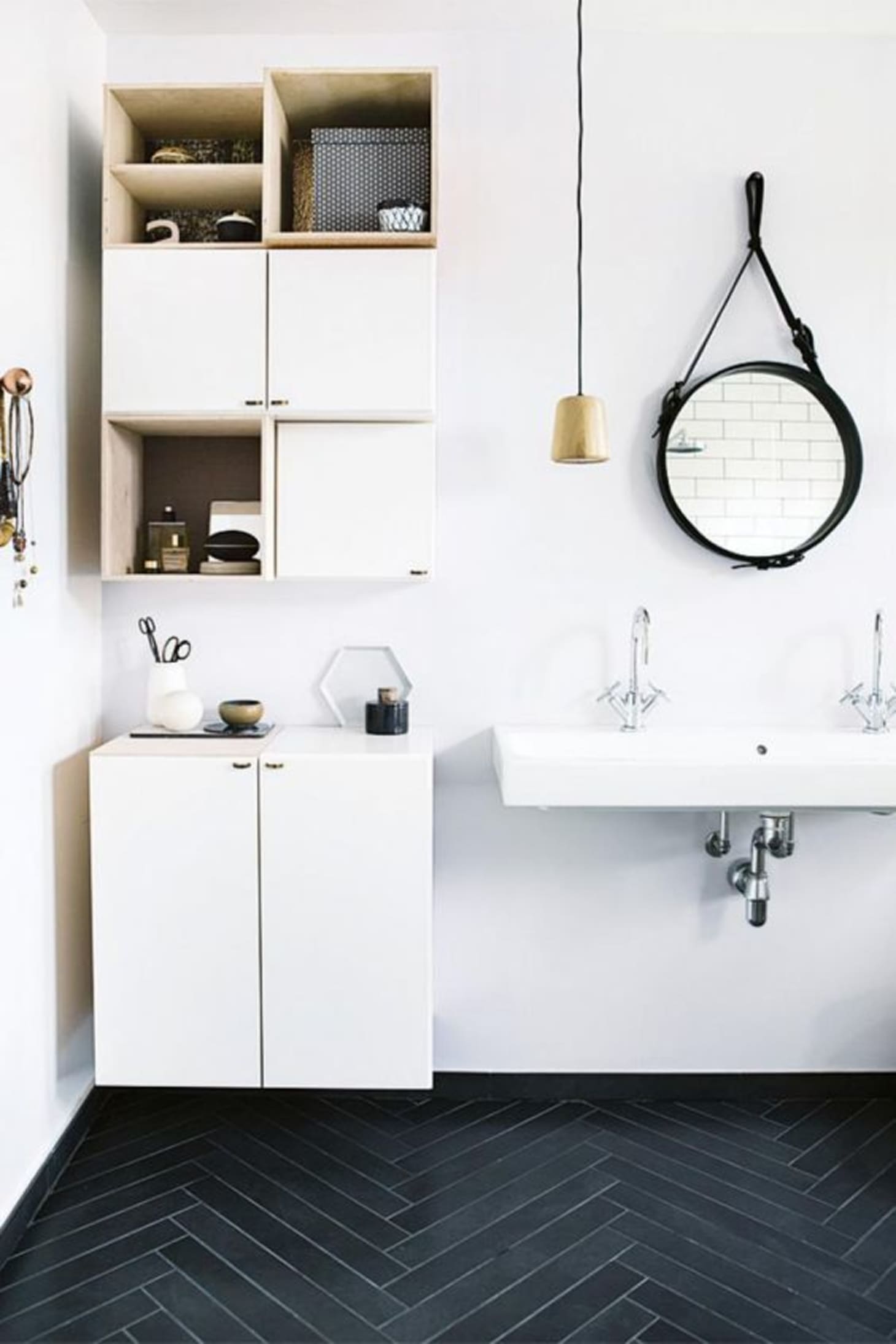 Herringbone Bathroom Floor Waterworks Double Washstand With White